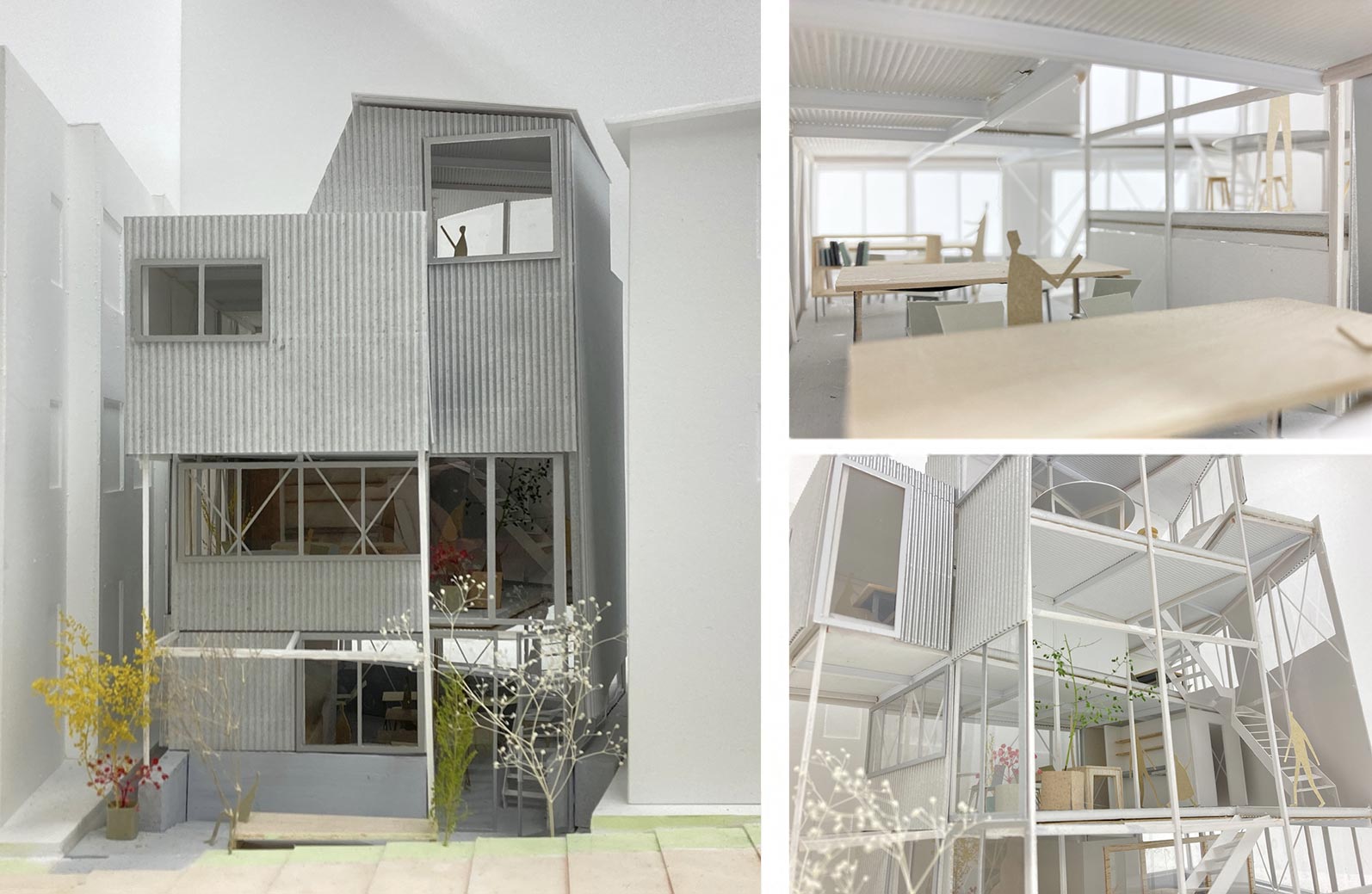 BONUS TRACKから20mほどの隣地に計画中の新ビルの模型。ツバメアーキテクツが入居し、1階にドーナツ屋を開店する。写真/ツバメアーキテクツ