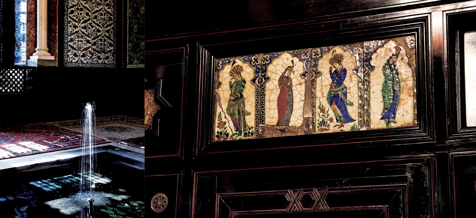 壁面を飾るタイルにはトルコ、シリアなどの骨董的価値の高いピースも多く、それらがモザイク状に組み合わさっている。レイトン自身が入手したものもあるが、タイルの入手には、興味深い人物が関わっていた。