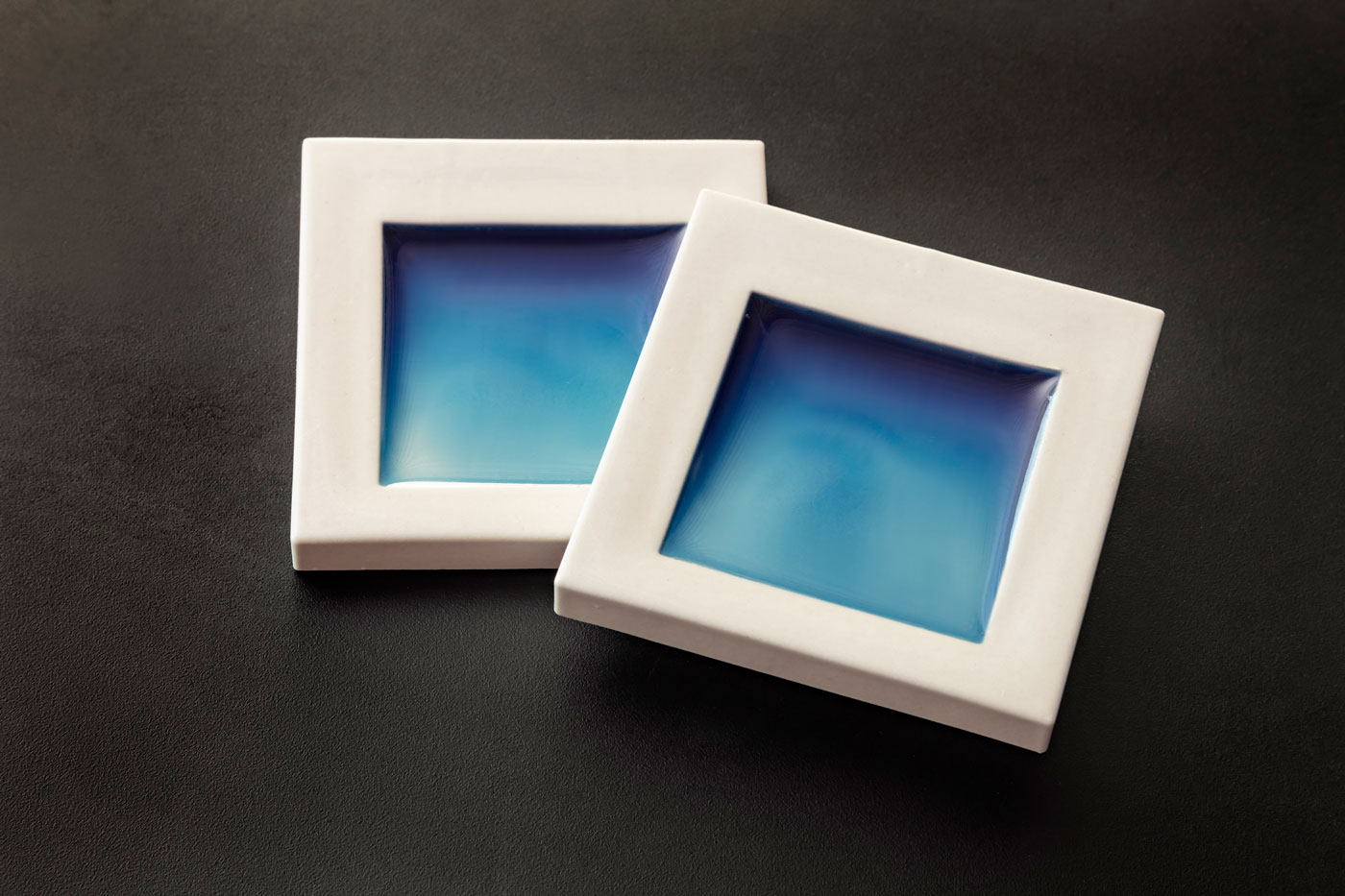 今回の試作の過程で検討された「水たまりタイル」はその後、梅干し店のプロジェクトで施主の目に留まり、梅干しを展示する器として、サイズと釉薬の色・テクスチャーをブラッシュアップして使われることになった。